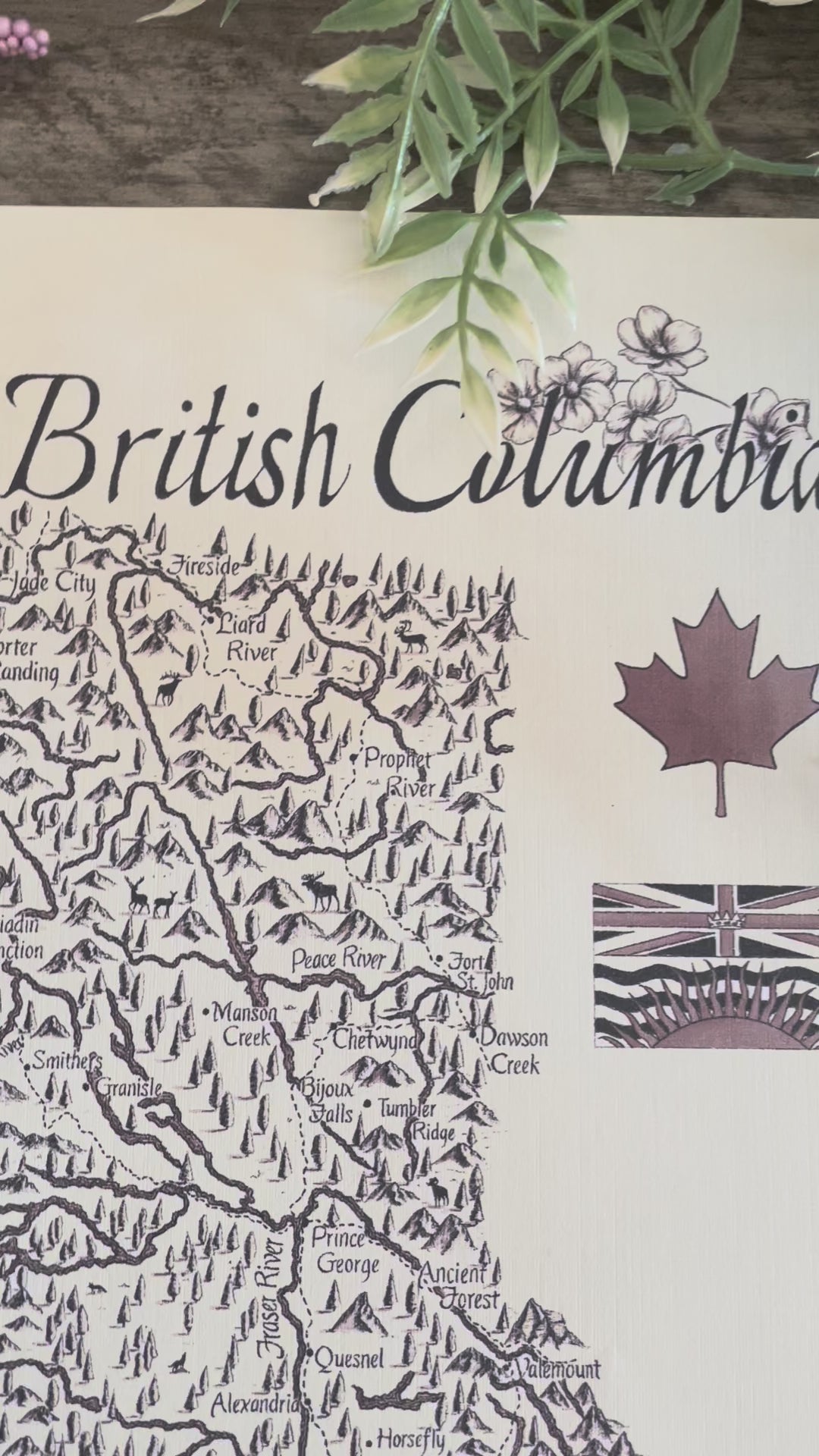 Discover the charm of British Columbia with this hand-drawn vintage map, blending fantasy style and Canadiana flair. Printed on linen-textured paper, it offers a tactile, authentic feel that enhances any space. Perfect for lovers of art and geography, this map brings a unique, timeless touch to your home or office décor.