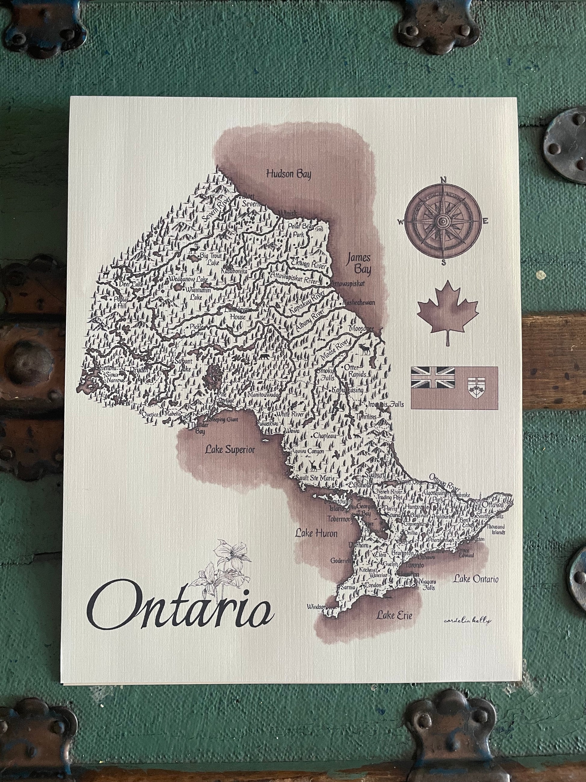 Discover the Ontario Vintage Map, a charming fantasy-style creation by a talented local artist. This whimsical, vintage-inspired piece captures the essence of Ontario with delightful details that spark imagination. Perfect for adding character to offices or cozy cabins, it also makes a unique and thoughtful gift for map lovers. Bring a touch of artistry and nostalgia to your space with this distinctive map that celebrates Ontario like no other.