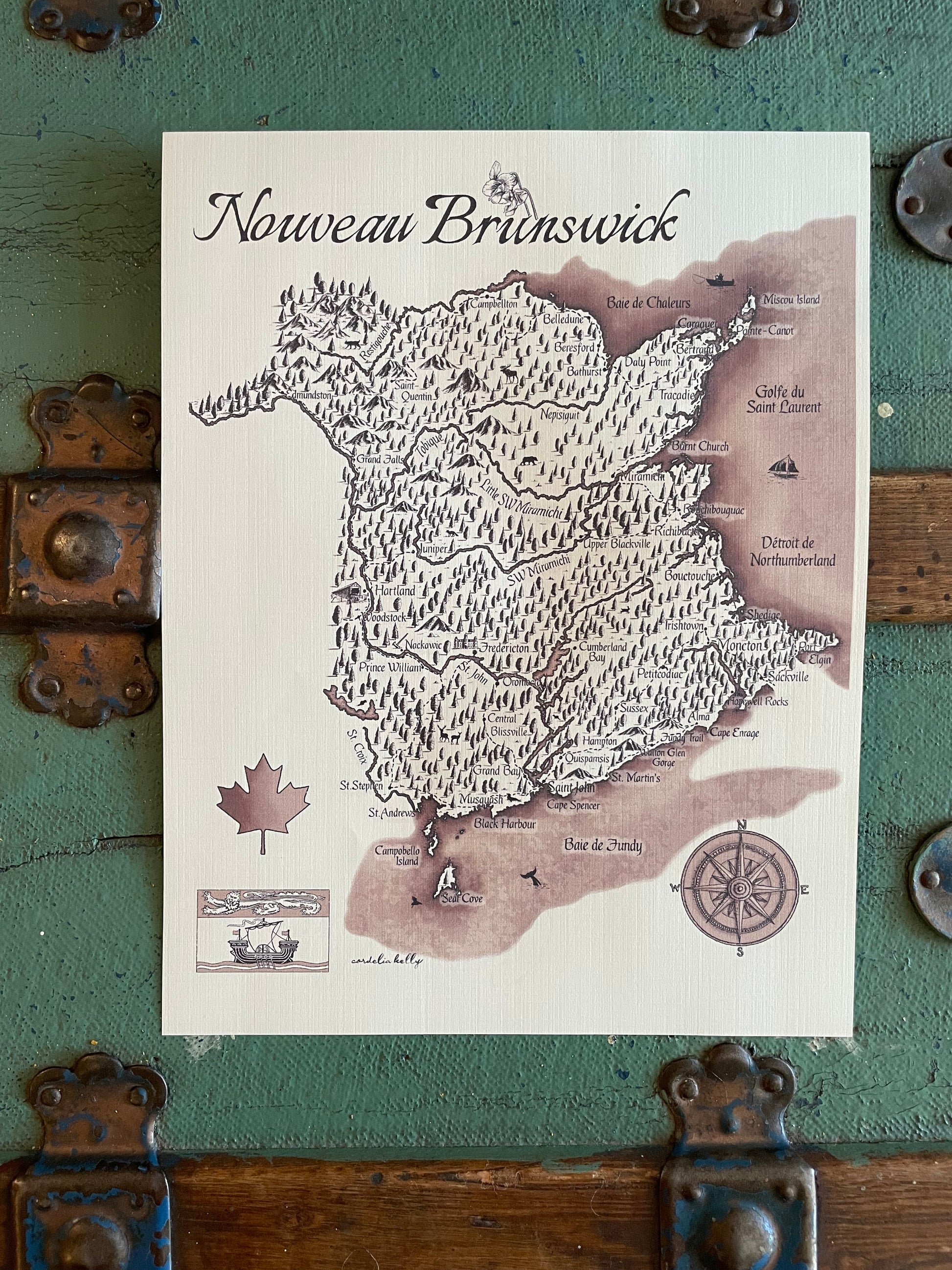 Discover the charm of New Brunswick through this beautifully detailed vintage map. Perfect for